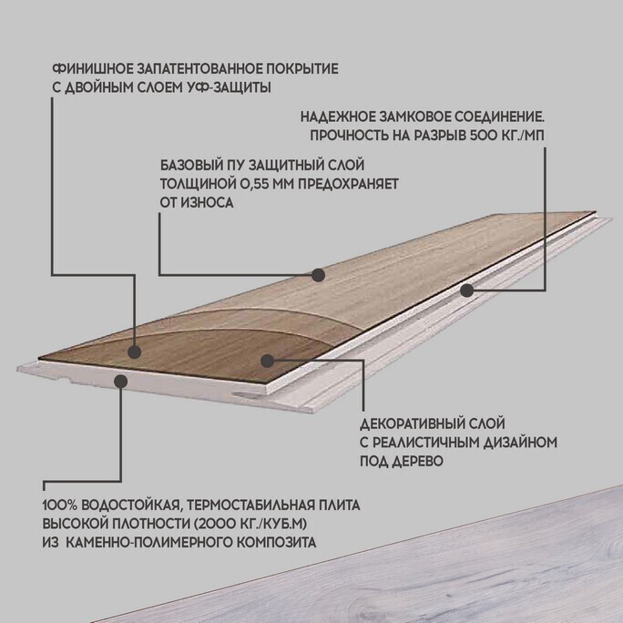 SPC ламинат I-Floors Basic - Дуб Шлосберг сочетает высокое качество исполнения с доступной ценой. Гарантия на этот товар составляет 10 лет, что подтверждает его надежность и долговечность. Выбирая SPC ламинат I-Floors Basic - Дуб Шлосберг, вы получаете качественное напольное покрытие с уникальными особенностями для создания комфорта и стиля в вашем интерьере.