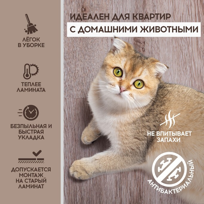 Способ монтажа "Механический замок" облегчит процесс укладки, а водостойкость позволит использовать его даже в помещениях с повышенной влажностью. Гибкость материала делает возможным использование ламината на неровных поверхностях. Особая толщина доски 3.5 мм гарантирует её прочность и износостойкость классом 42, что подходит для любых условий эксплуатации.