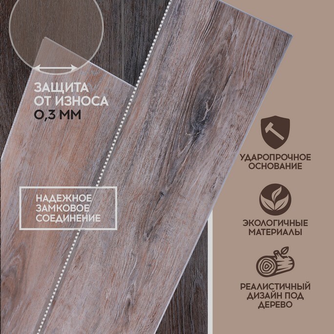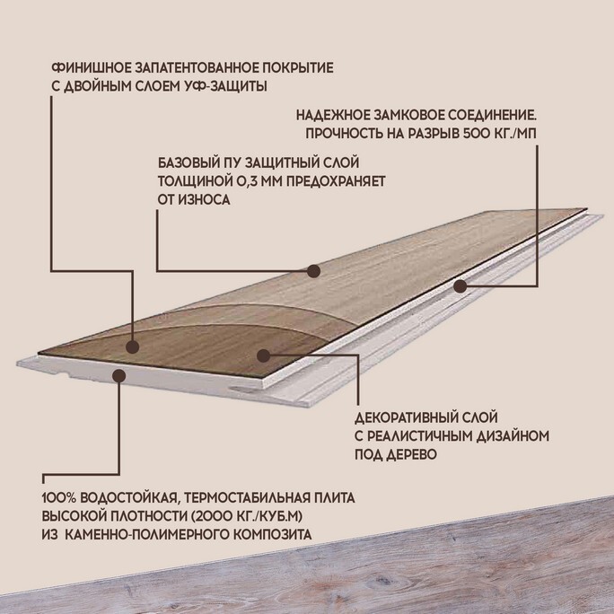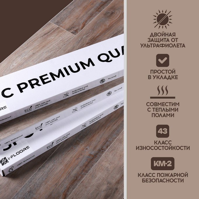 Высокий класс износостойкости (42) делает этот SPC ламинат отличным выбором для коммерческих помещений или активных семейных жилых зон.